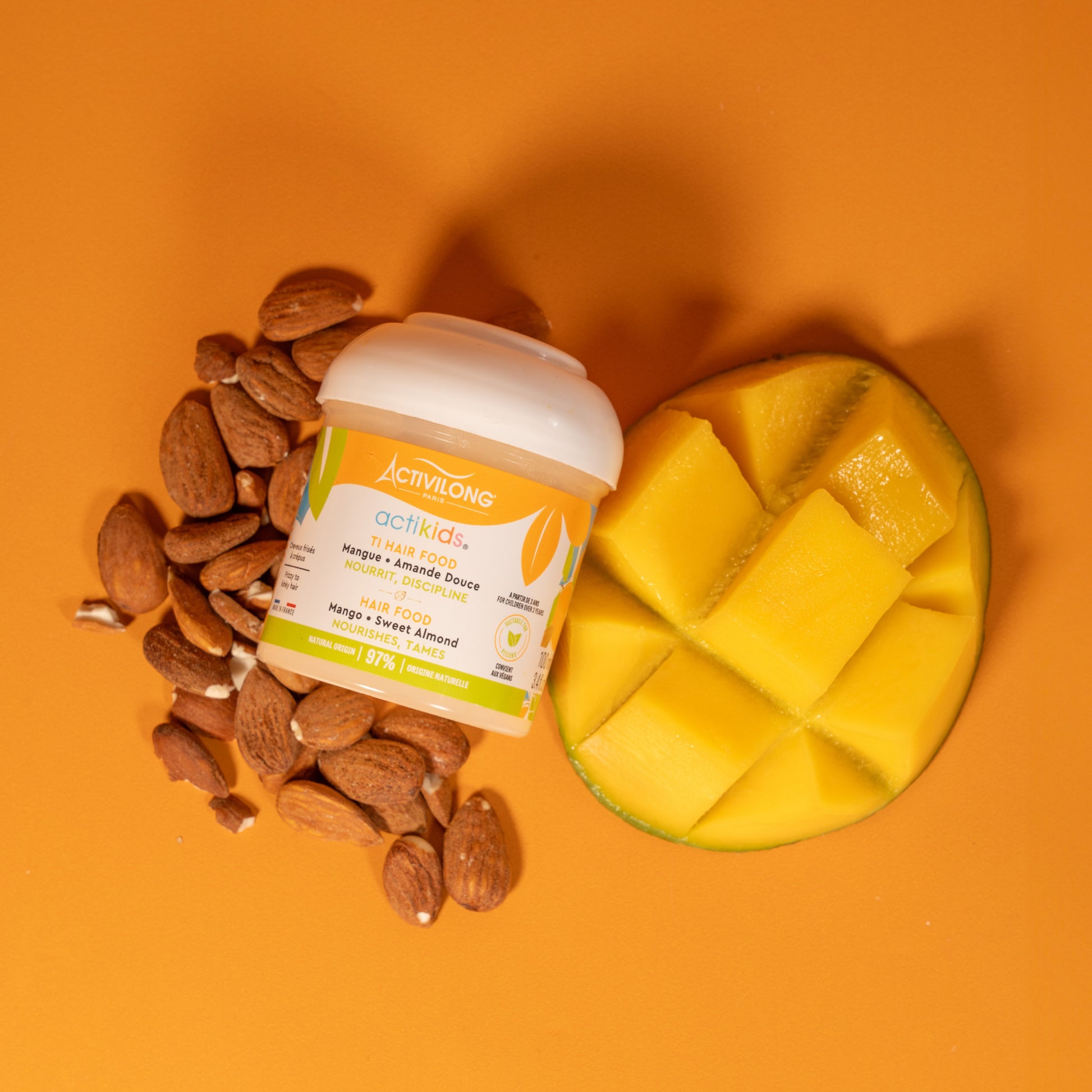 Gently seal in moisture! The balm that nourishes and protects! It’s enriched with organic Mango butter and Sweet Almond oil to intensely nourish and, above all, tame hair. Its melting texture seals in moisture and leaves hair feeling soft. Its superpower: It can also be used to braid or control baby hair! The presence of allergens in trace amounts is not excluded.