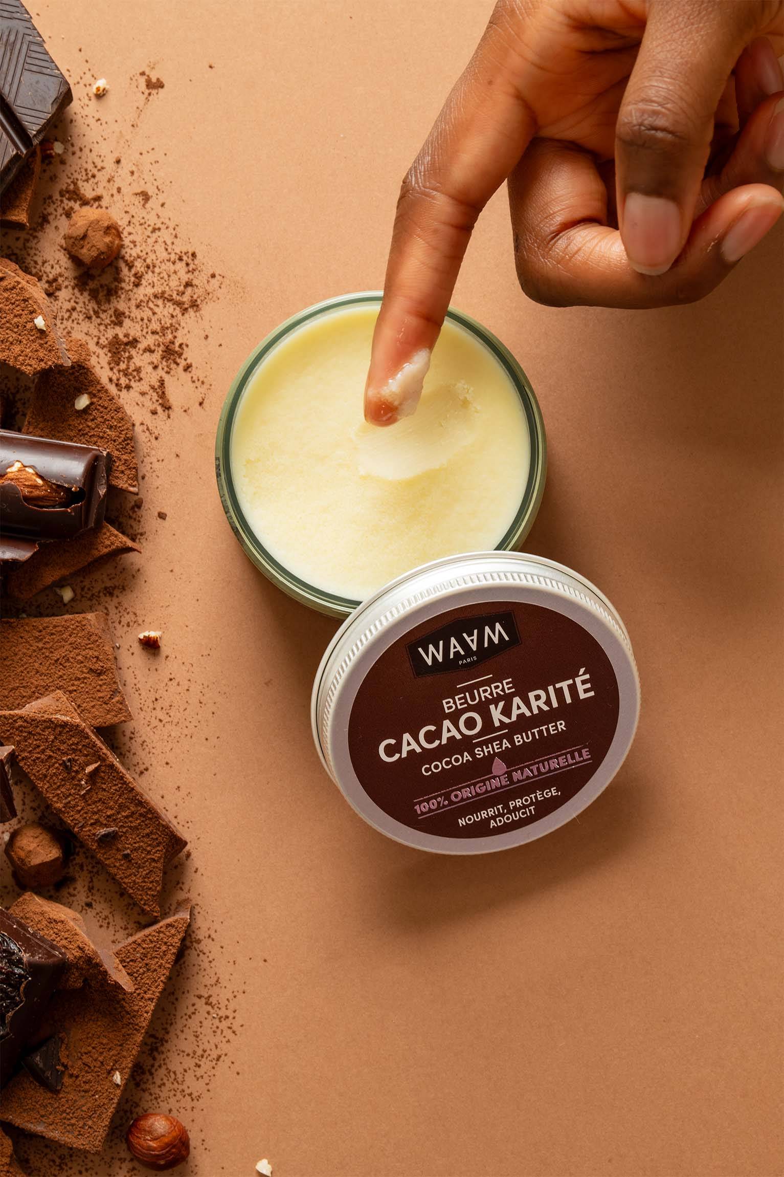 Face, Body and Hair LIMITED EDITION100% natural cocoa and shea butter is a multi-purpose product to nourish and care for skin and hair on a daily basis while leaving a comforting and delicious scent. It can be used neat and is suitable for all skin types.Uses: body balms, lip balm or stick, hair careIndications: dry skin, dry and damaged hair, chapped lips, dry hands