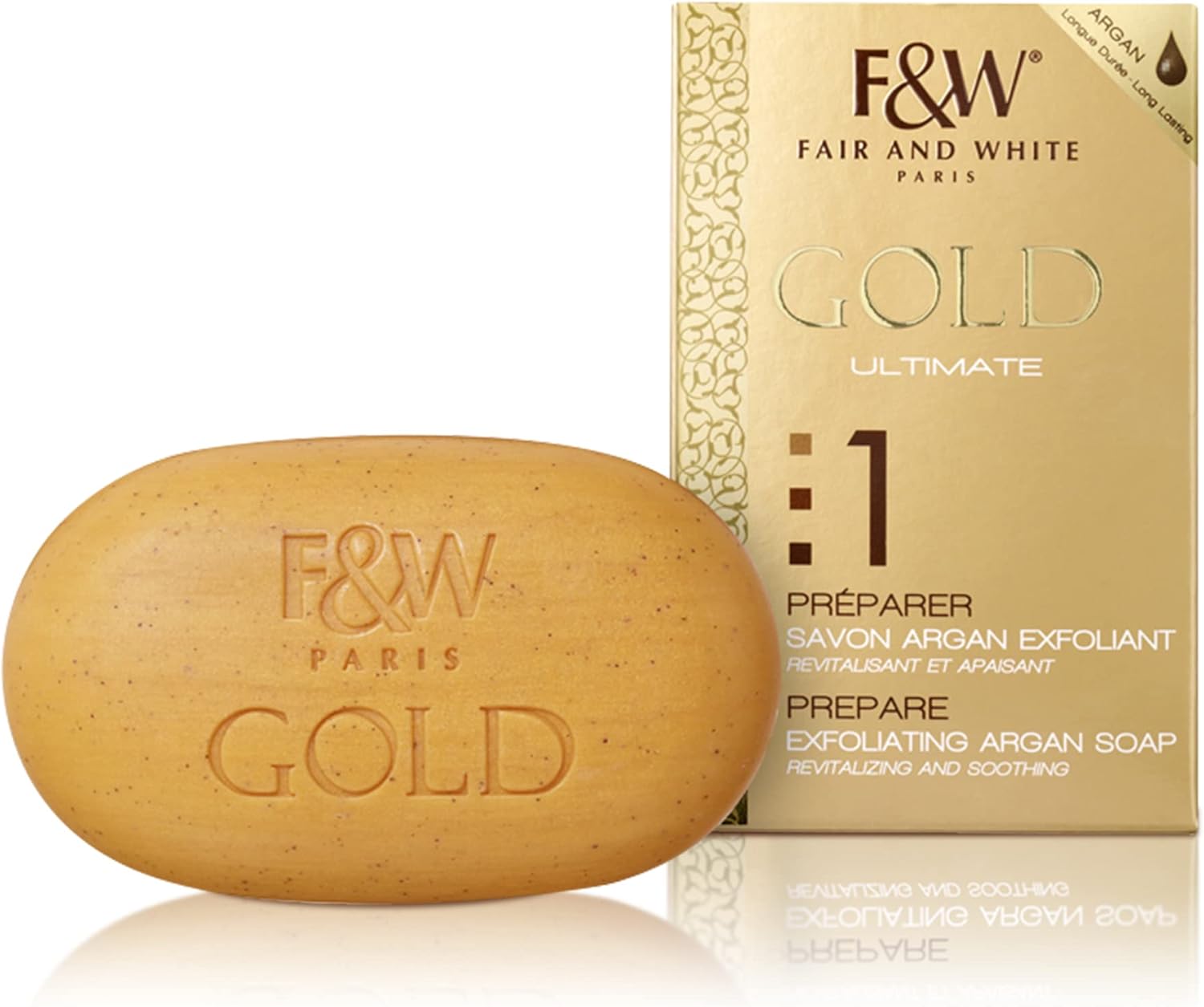 PREPARE THE CANVAS : This sparkling and gentle exfoliating bar delicately removes dead surface skin as it regenerates dull skin back to its soft and silky texture. NATURAL EXFOLIATORS : Apricot Seed powder naturally exfoliates for a smooth finish without the use of harsh chemicals. THE MAGIC OF ARGAN OIL : Naturally rich in beneficial fatty acids, Vitamin E, and carotenes, Argan oil relieves dry skin and provides protection against the elements. GOLD ULTIMATE : Our Gold Ultimate line is formulated to enhance your skins natural beauty, brightening and preserving its flawless texture and tone with specific skincare solutions that offer a complete line of exceptional skincare formulas for every woman who has whitening concerns.