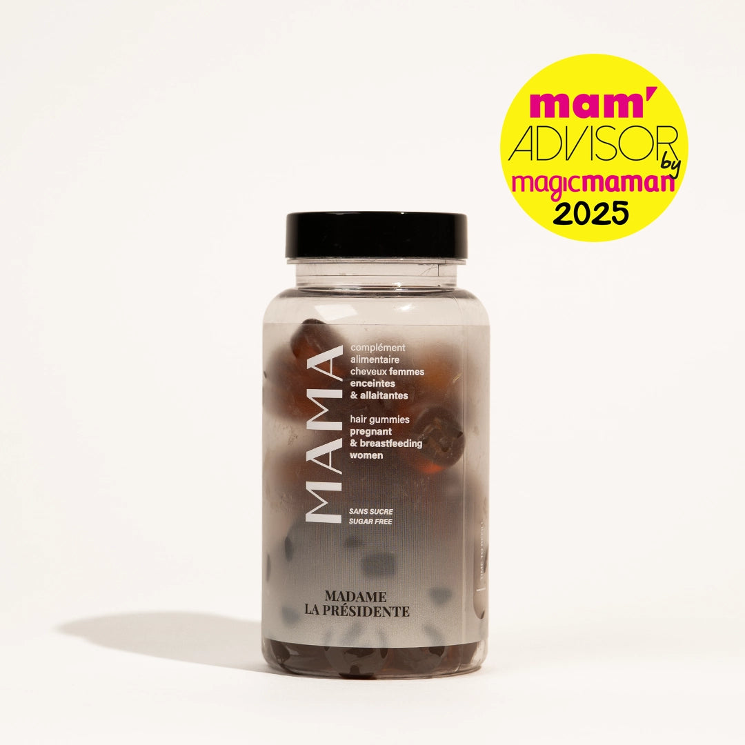 MAMA gummies won the Grand Prix Mam’Advisor by Magicmaman. 🥇 MAMA is a concentrate of vitamin C, E, B6, B8 and iron. It stops hair loss, stimulates growth , helps reduce hair breakage and strengthens hair from the inside. Suitable for all hair types (straight, wavy, curly, frizzy, kinky), it is the food supplement you need when you are pregnant and/or breastfeeding to regain volume and thickness.