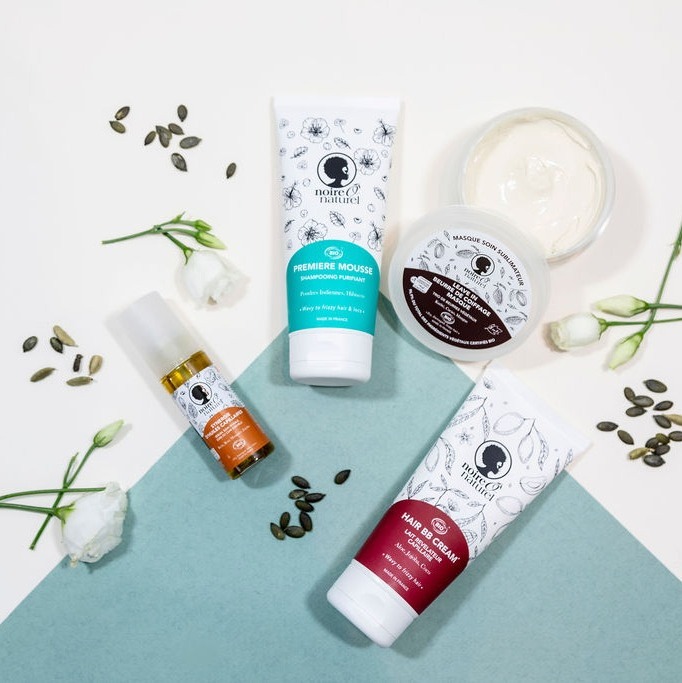 Styling Care – Hair Milk Hair BB Cream is the first Noireônaturel multifunctional, moisturizing and nourishing styling treatment. Composed of certified organic natural plant active ingredients, Hair BB Cream is a revealing hair milk for dry, damaged, curly, frizzy, kinky or relaxed hair. It is also suitable for locs on which it leaves no residue. It reveals your beauty capital by facilitating styling, redefining curls, and acting as a barrier against daily aggressions thanks to its emollient action. It helps limit frizz. The trio of plant butters will nourish the hair, while Aloe vera and lemon balm hydrosol will moisturize the fiber. Natural glycerin helps detangle and redefine your curls while natural plant oils (castor, jojoba, coconut) will strengthen and add shine. Its texture is that of a fluid milk-cream which, melting into the hair, will reveal its beauty in a single gesture. Its fragrance is subtle and captivating with floral notes that we imagined and designed with a perfumer from Grasse (no less). It will leave a pleasant and soft trail on your hair. We took great pleasure in developing the Hair BB Cream and we hope that you will like it as much as we do. Directions for use Without rinsing, it can be applied as a styling treatment or as a leave-in. As a styling treatment: – on dry hair for a perfect “gel effect” definition of your curls. – on “damp” to “very wet” hair for definition and a natural effect. As a leave-in conditioner, apply to towel-dried hair just after shampooing or deep conditioning. Avoid contact with eyes.