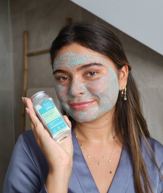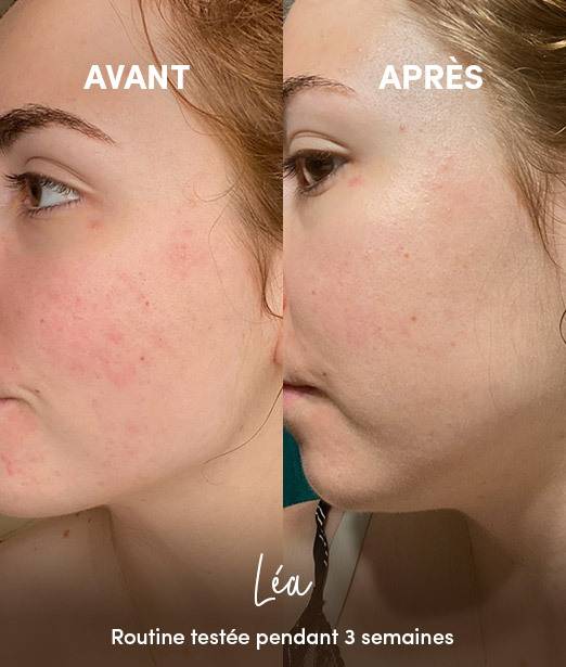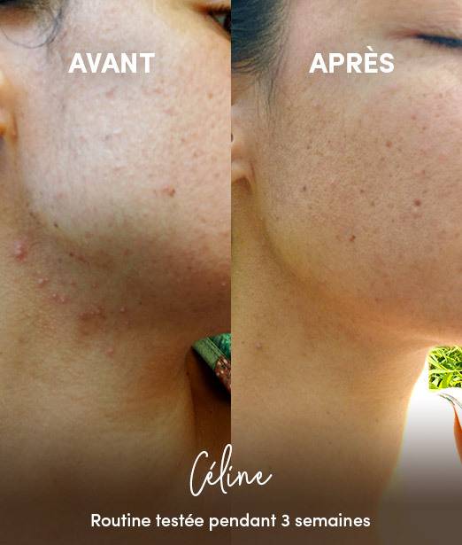 The certified organic purifying powder mask transforms into an ultra-melting creamy texture upon contact with water to purify and cleanse the skin. Composed of green clay, eucalyptus powder and tea tree essential oil, this mask is an ally for combination, oily or blemish-prone skin. Before/after photos: results of the Anti-Blemish Facial Cleanser + Anti-Blemish Facial Mask routine used for 3 weeks.