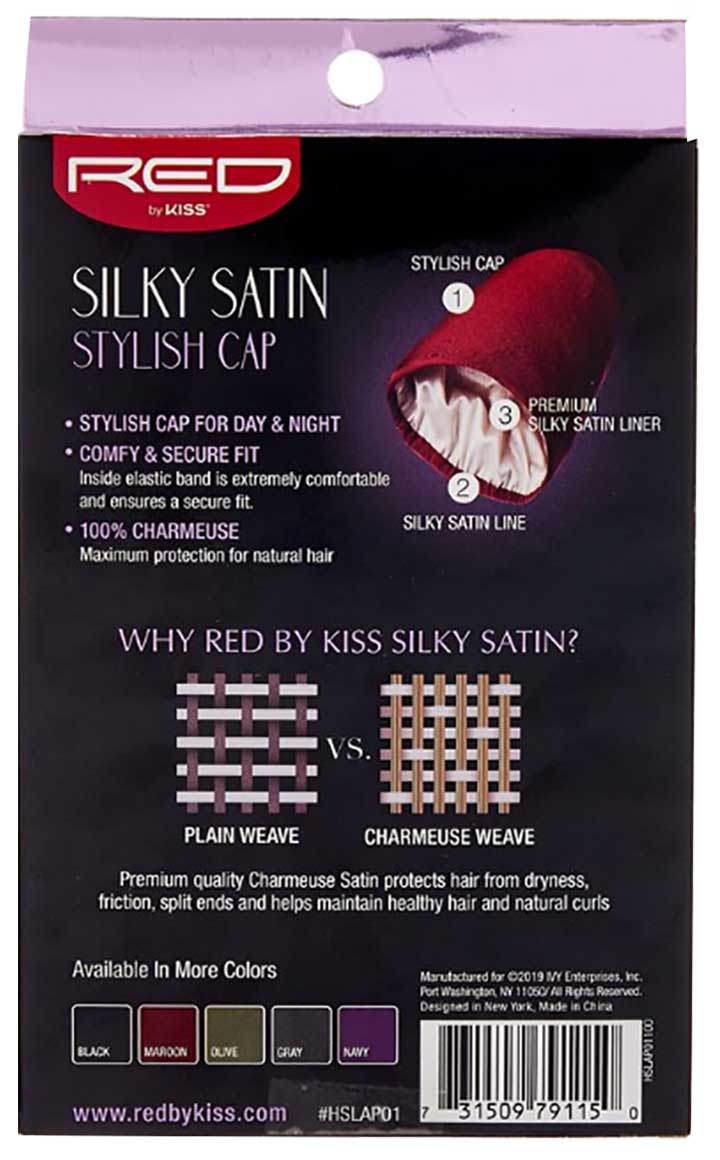 Stylish cap for day and night. Inside elastic band is extremely comfortable and ensure a secure fit. Red By Kiss Silky Satin Stylish Cap HSLAP01 Black is a 100% for charmeuse and maximum protection for natural hair.One size fits for all.
