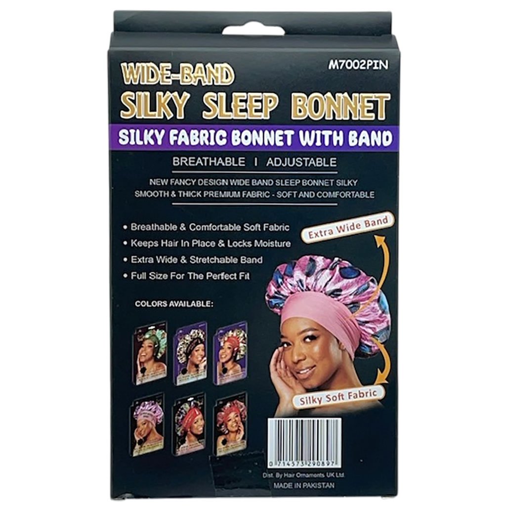 Silky Sleep Extra Wide Band Bonnet M7002PIN , Silky fabric bonnet with ban Breathable adjustable .New fancy design wide band sleep bonnet silky Smooth & thick premium fabric – soft and comfortable . Breathable & Comfortable Soft Fabric Keeps Hair In Place & Locks Moisture Extra Wide & Stretchable Band Full Size For The Perfect Fit