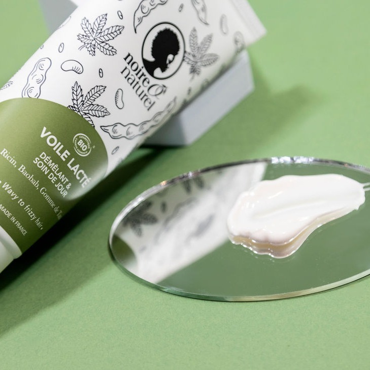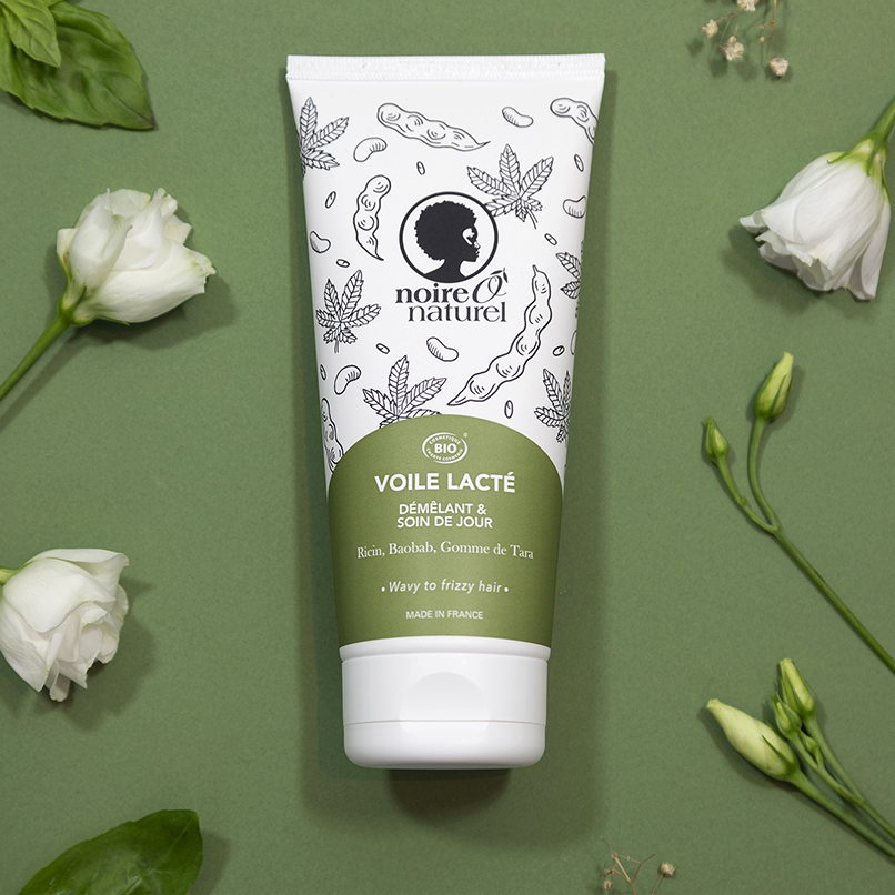 Detangling and Day Care (VEGAN) NEW – Discover our organic detangling product “VOILE LACTE” to take care of your hair naturally. Its ultra-gentle formula, without quaternary ammoniums or silicone, is enriched with baobab oil, castor oil and Tara gum! 2 in 1, it will allow you to detangle your hair after shampooing and/or protect and enhance your hair for the day in one step and with a single product. Suitable from 36 months. Directions for use Directions for use: Apply to wet hair, after your First Mousse, leave on for a few minutes then detangle with a wide-toothed comb, finally rinse. As a leave-in day care, it can be applied when styling on dry or damp hair or after your shampoo or deep treatment when you use it as a Leave-in conditioner. Avoid contact with eyes.